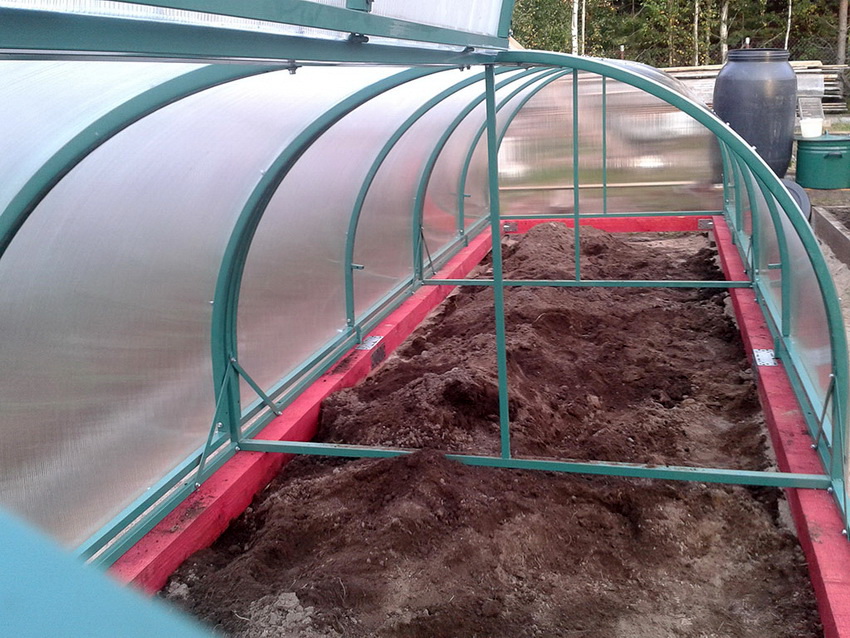 Nasihat berguna! Untuk membuat pemanasan semula jadi rumah hijau, anda boleh mengisinya dengan serpihan organik dari kedua sisi. Preya, daun kering, rumput dan baja akan menghasilkan panas, secara semula jadi memanaskan tanah.