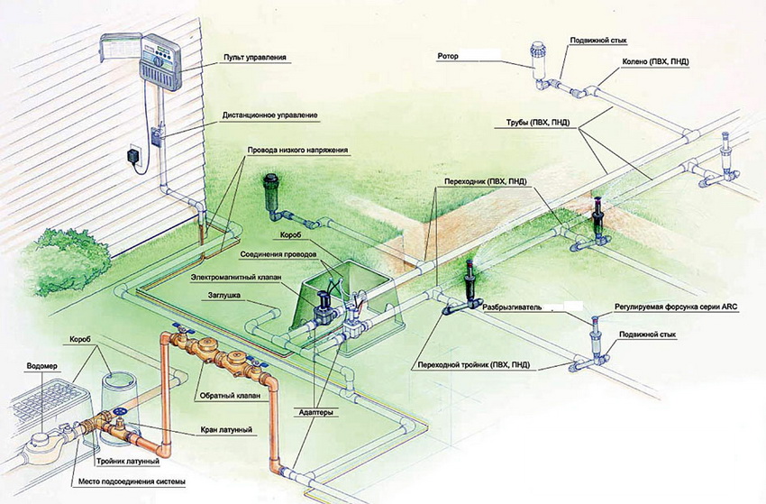 Pemasangan sistem pengairan dan pengairan untuk kediaman musim panas