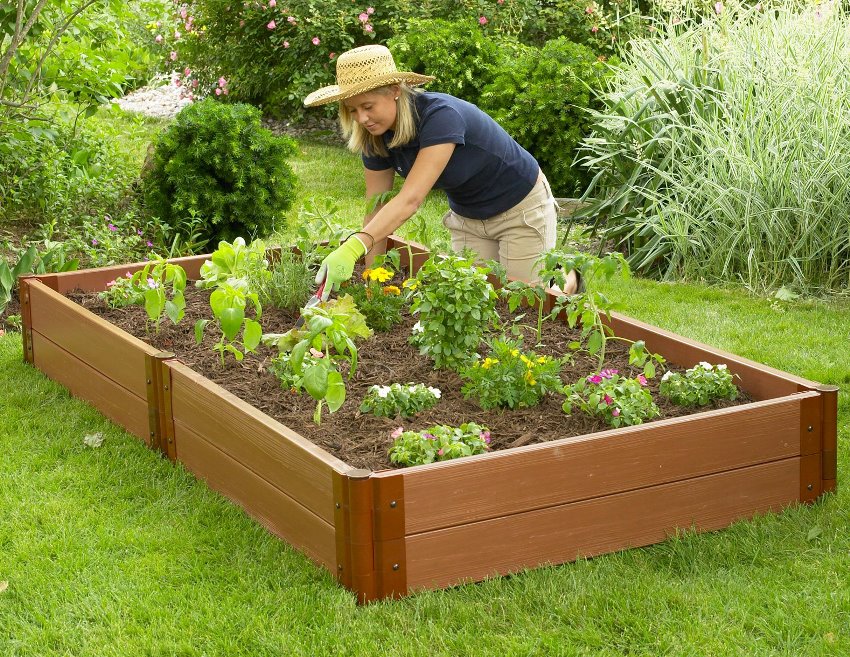Bahan apa pun boleh digunakan untuk membuat sisi taman yang tinggi, tetapi papan paling sering digunakan