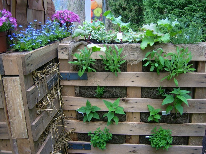 Untuk pembinaan struktur menegak, dibenarkan menggunakan bahan yang tidak biasa, misalnya palet, perabot lama, tunggul kosong, dan lain-lain. Pendekatan hiasan yang tidak biasa akan membolehkan anda membuat kebun sayur yang sukar di wilayah ini, tetapi komposisi hiasan yang indah yang akan sesuai dengan optimum ke ruang pondok musim panas.