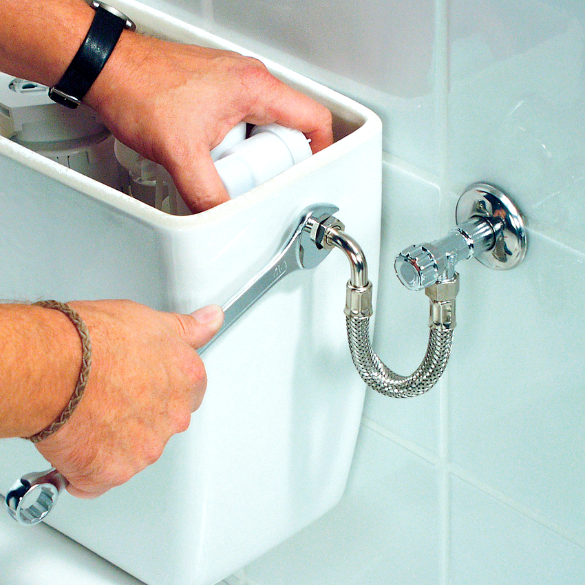Kemudian selang fleksibel disambungkan ke sambungan paip bekalan air. Anda juga perlu memasang keran, yang pada masa akan datang akan digunakan semasa pembaikan sehingga anda dapat menyekat akses cecair ke tandas. Selang moden dilengkapi dengan pengapit grommet. Terima kasih kepada mereka, hubungannya kuat dan boleh dipercayai.
