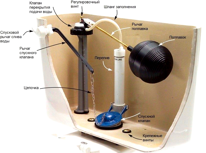 Pelbagai kelengkapan tangki dalaman. Pembongkaran, pemasangan dan penyesuaian mekanisme. Penyelesaian masalah.
