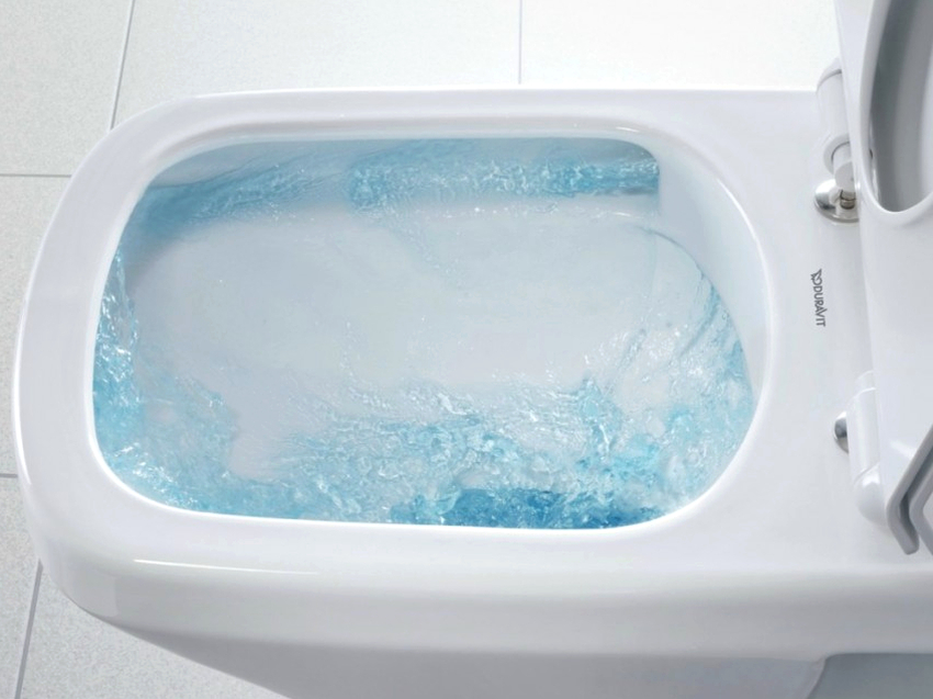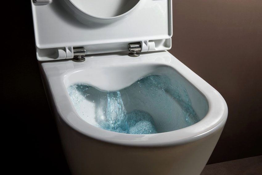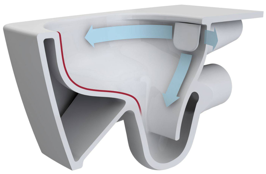 Terima kasih kepada penyebar khas, cecair yang keluar dari satu titik menyiram mangkuk tandas sepenuhnya tanpa menyemburkan atau memercikkan
