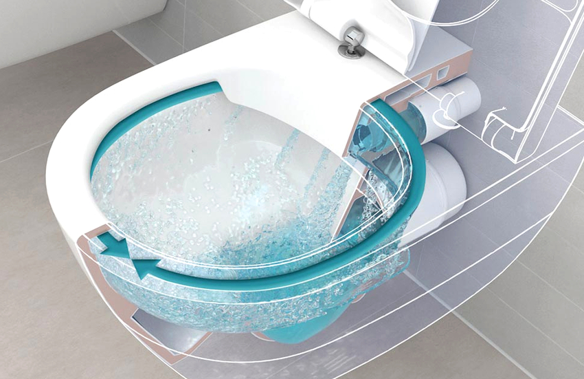 Untuk memahami bagaimana flush berfungsi, sudah cukup untuk mengkaji reka bentuknya. Mekanisme siram mangkuk tandas klasik mempunyai keratan rentas berbentuk U. Apabila memerah, air mengalir di sepanjang tepi. Ini akan mencuci bahagian belakang mangkuk. Dalam kes ini, bezel bertindak sebagai panduan. Ini membolehkan air mencapai sisi dan depan mangkuk.