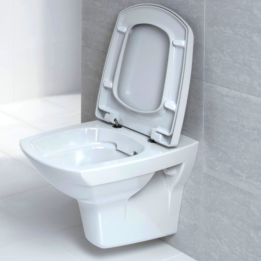 Kelebihan tandas yang digantung di dinding menjadi jelas pada pandangan pertama reka bentuknya. Lekapan paip ini menjadikan pembersihan bilik menjadi lebih mudah. Tidak ada kaki dalam struktur, sehingga kotoran tidak terkumpul di sekitarnya. Kawasan di bawah tandas terbuka dan boleh diakses sepenuhnya untuk pembersihan. Di samping itu, produk gantung sangat padat. Mereka dapat meningkatkan ruang di dalam bilik secara visual, yang merupakan kelebihan yang signifikan bagi pemilik pangsapuri kecil.
