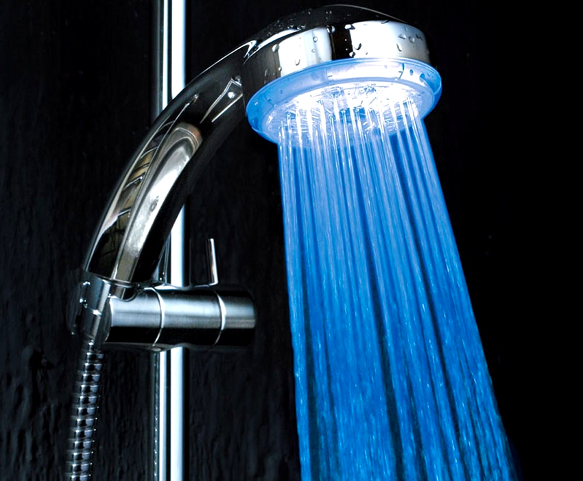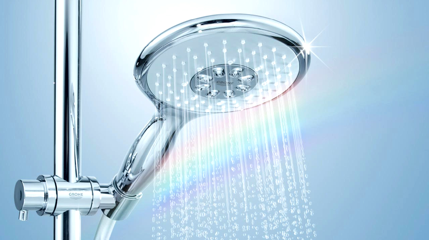 Kepala pancuran lampu latar akan menjadikan persekitaran bilik mandi berwarna, secara harfiah dan kiasan