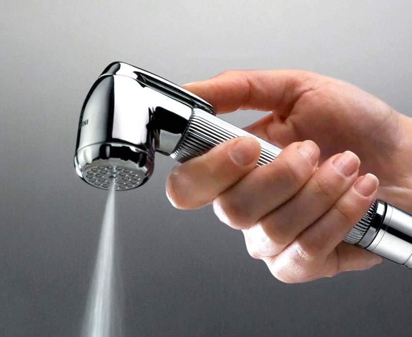 Pilihan yang dipasang di dinding biasanya dipasang di sebelah tandas atau bidet. Proses permohonannya mudah: anda perlu melepaskan kepala pancuran (selang untuk model seperti itu biasanya digunakan pendek), berikan kedudukan yang diperlukan dan tekan butang air mulai.