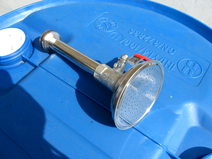 Kepala pancuran musim panas dipasang di bahagian bawah tangki, di mana air dibekalkan ke sistem di bawah tekanannya sendiri