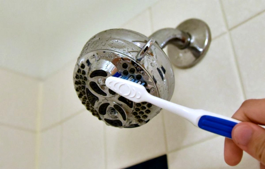 Jangan menyemburkan bahan pembersih ke kepala pancuran kerana boleh meresap ke dalam struktur. Anda perlu meletakkannya pada serbet dan lap bahagian yang memerlukan pembersihan.