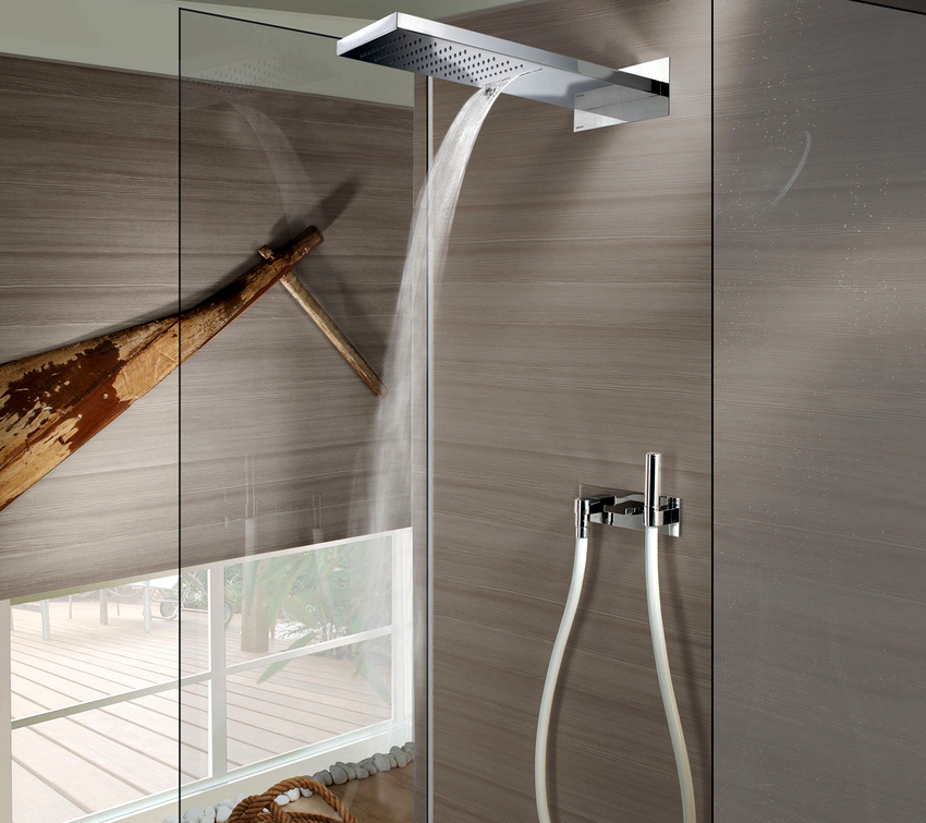 Model moden boleh dianggap sebagai pancuran paip yang dilengkapi dengan kepala pancuran hujan. Badan keluli tahan karat dan aliran titisan yang kuat mewujudkan suasana seperti tropika.