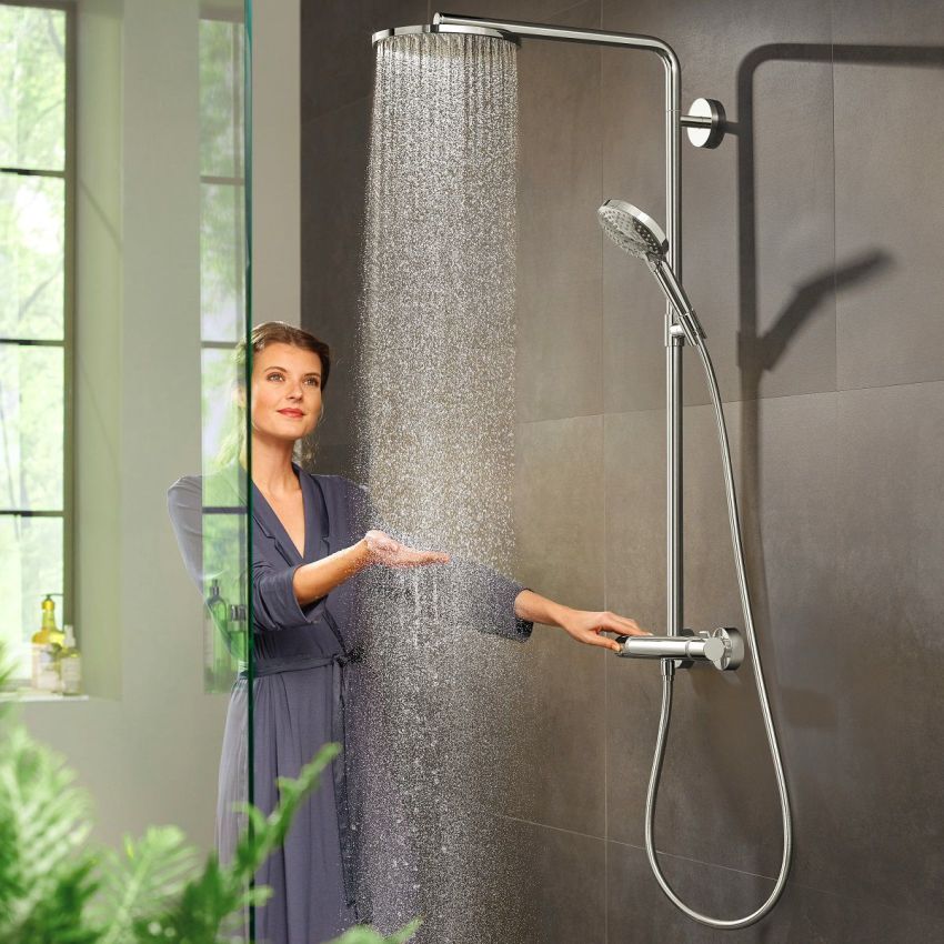 Panel pancuran mandian dengan pancuran hujan dan paip pengadun Hansgrohe sangat diminati. Banyak pilihan dibezakan dengan bentuk panel yang diperkemas dan menarik. Mereka boleh dibuat dari plastik bersalut atau kaca temper. Pilihan ini dilengkapi dengan muncung. Tong penyiram pegun dibina di bahagian atas struktur yang menonjol di atas.