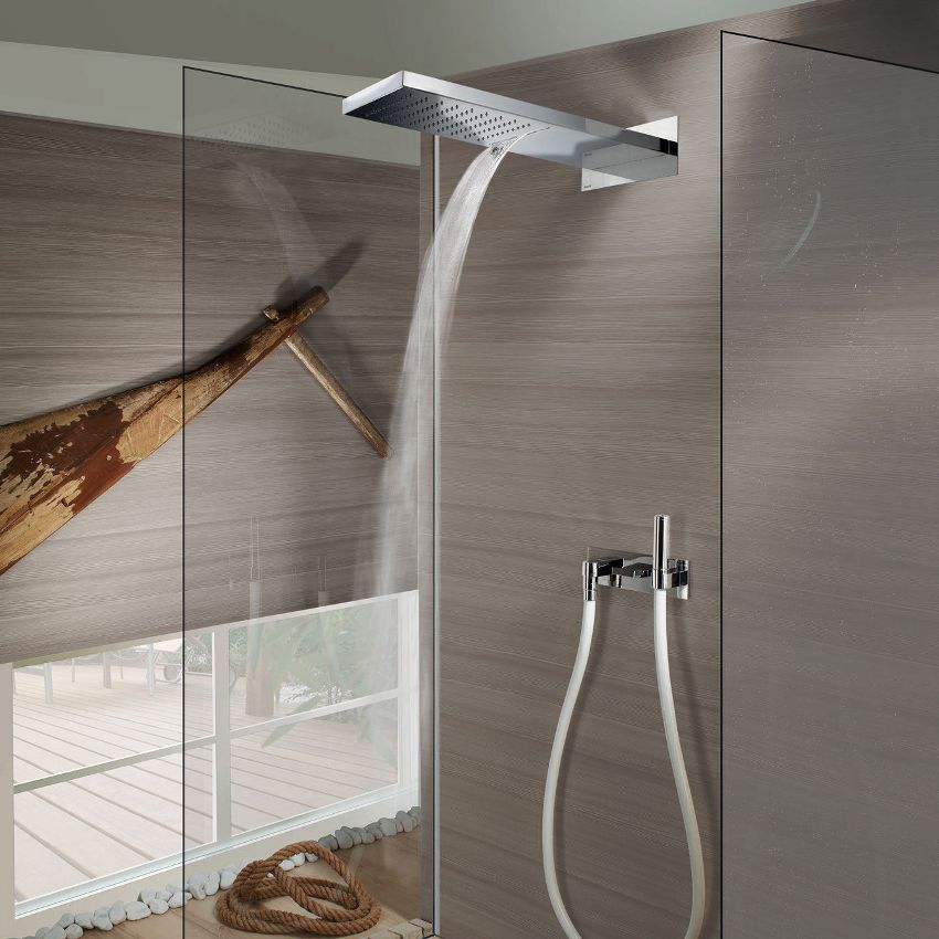 Nasihat berguna! Sebelum membeli sistem pancuran mandian reka bentuk eksklusif, anda perlu memastikan bahawa ketebalan dinding akan membolehkan anda menyembunyikan komunikasi yang diperlukan di dalamnya.