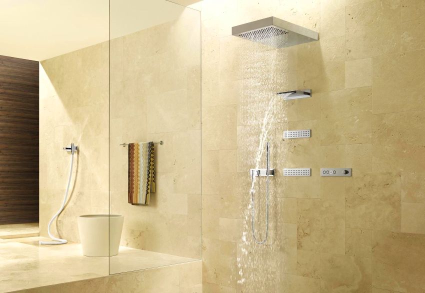 Dan yang paling penting - reka bentuk. Di antara peralatan pengeluar ini, anda boleh mendapatkan pilihan untuk setiap selera. Rak mandi Hansgroe klasik dengan kepala pancuran bulat yang boleh ditanggalkan sesuai untuk bilik mandi kecil. Mereka dibeli oleh pengguna yang lebih suka minimalisme dalam persekitaran rumah tangga.