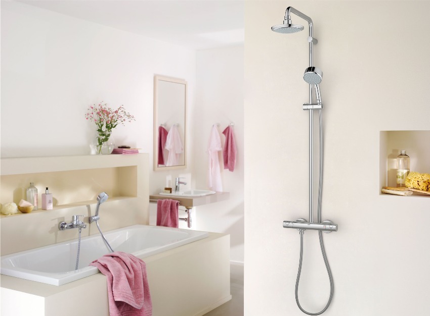 Rak mandi Grohe: kemungkinan konfigurasi, harga