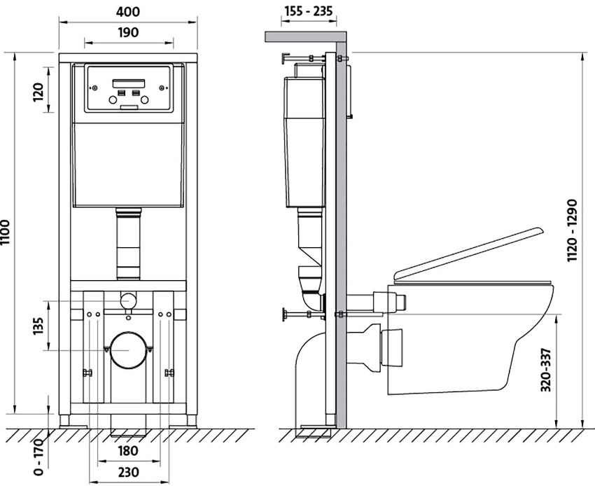 Dimensi di atas adalah standard dan digunakan dalam kebanyakan kes. Ukuran mangkuk tandas dengan pemasangan ini sangat sesuai untuk anatomi manusia dan memaksimumkan keselesaan.