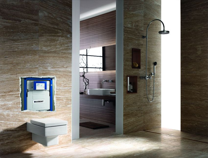 Pemasangan menjimatkan ruang dan menyembunyikan saluran air: semua paip dan komunikasi tidak dapat dilihat dan diletakkan di dinding