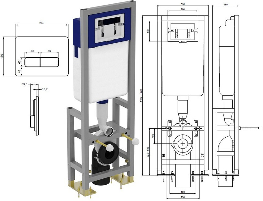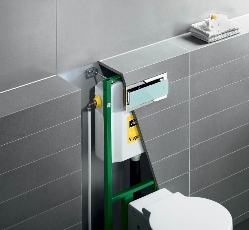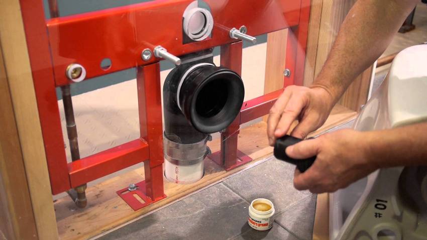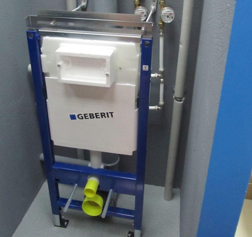 Rangka... Struktur ini terletak di dinding dan terdiri daripada unsur keluli yang menyokong komponen pemasangan yang lain. Versi bingkai sangat bagus untuk memasang tandas gantung. Dalam beberapa kes, peranti lain terpasang padanya (sebagai contoh, sink).