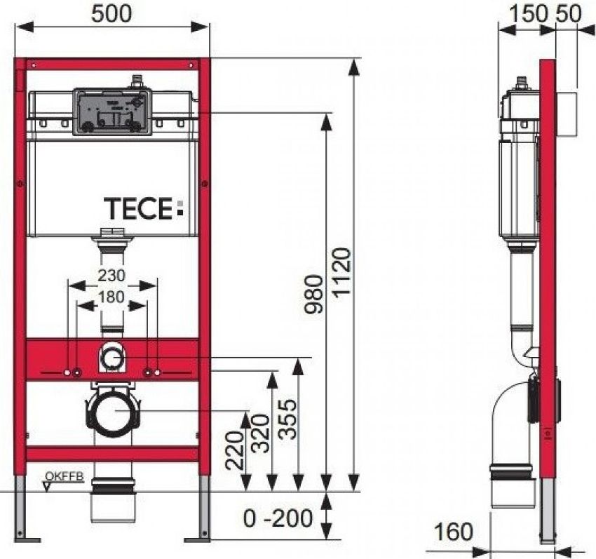 - jarak dari dinding ke permukaan depan bingkai - 150 mm;