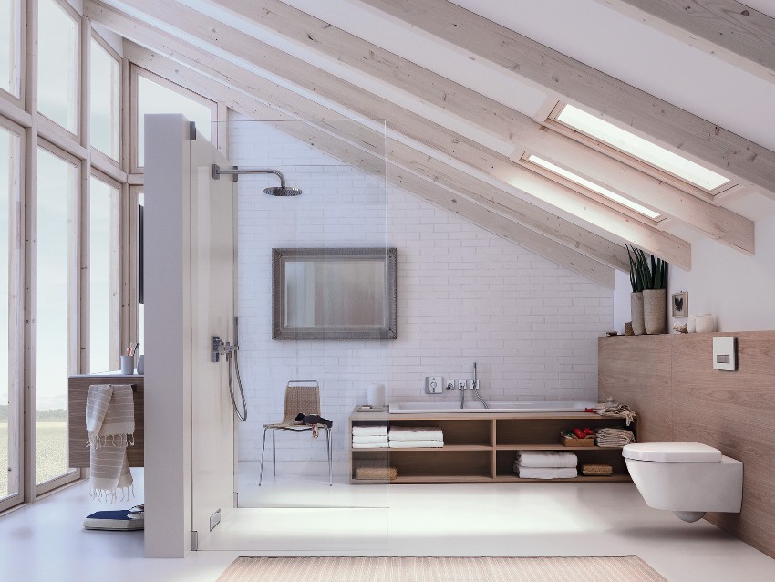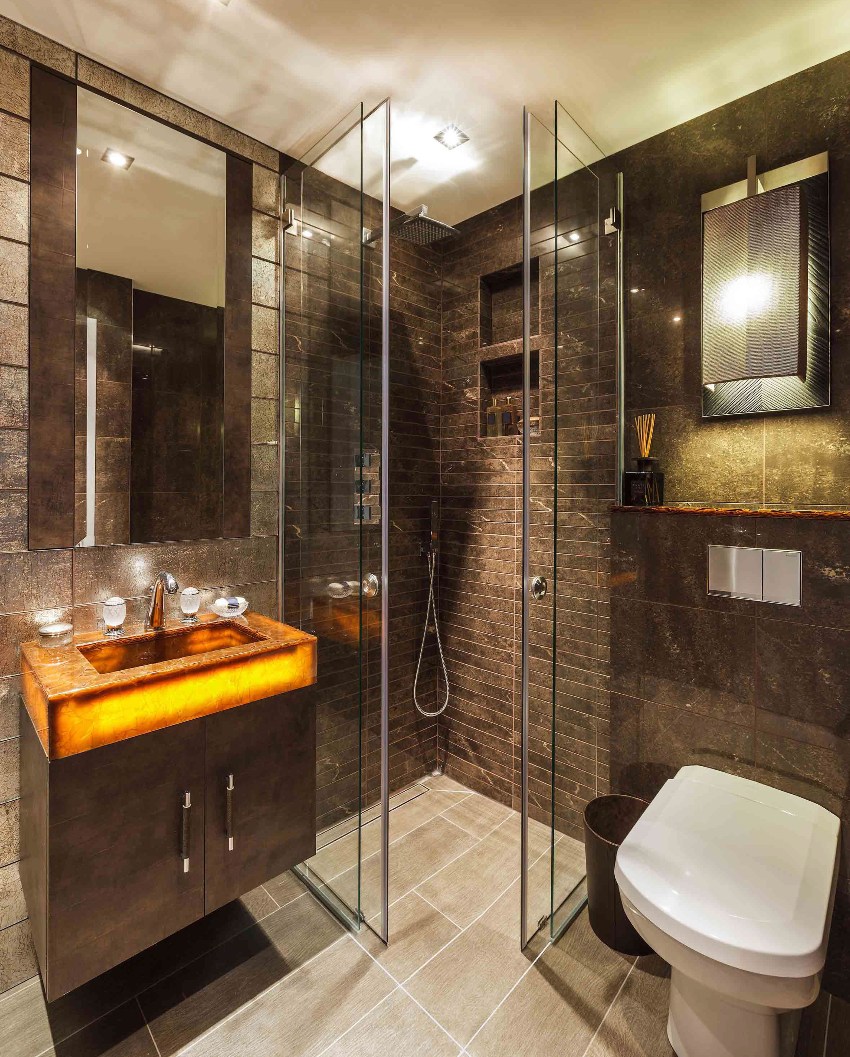 Pemasangan membolehkan anda bereksperimen dengan selamat dengan reka bentuk bilik mandi dan menjimatkan ruang dengan sempurna