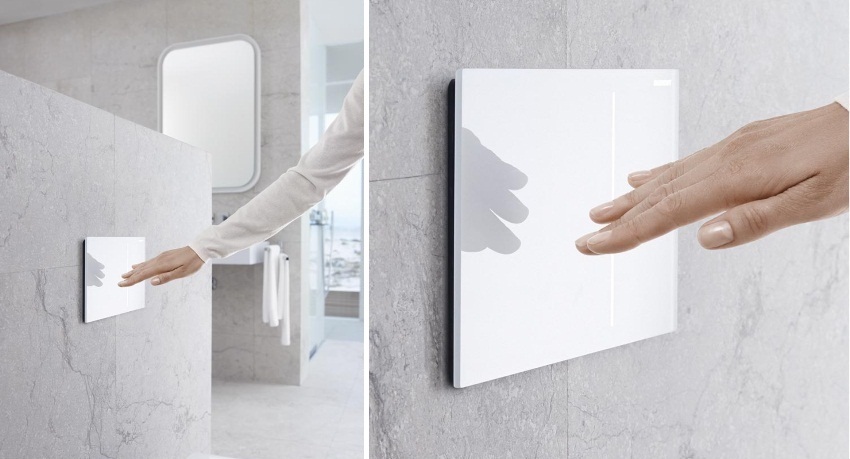 Secara berasingan, ia harus dikatakan mengenai model butang flush tanpa sentuh. Oleh kerana reka bentuk dan ciri operasi mereka, peranti ini merupakan pilihan terbaik untuk pemasangan di tandas awam. Sistem ini, yang dipicu oleh sensor inframerah, menghindari keperluan menyentuh permukaan panel.