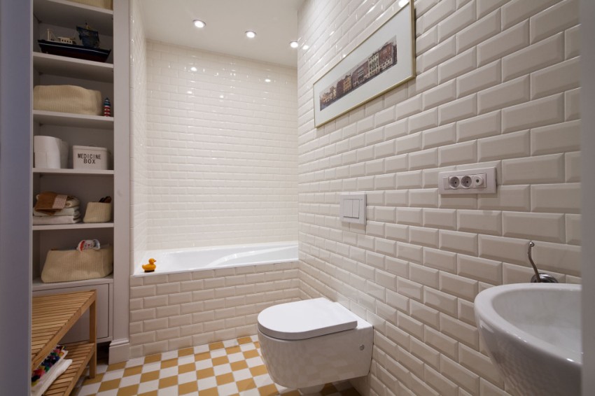 Sekiranya kemasan kotak akan dilakukan dengan jubin, maka para pakar mengesyorkan untuk mula meletakkannya dari butang longkang.