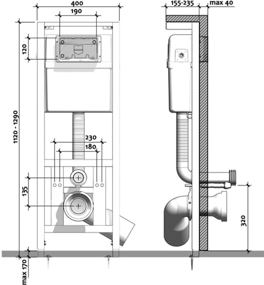 Salah satu yang paling popular adalah pemasangan Geberit, pemasangannya dilakukan mengikut arahan. Rangka dipasang secara menegak dan dipasang pada dinding dan lantai menggunakan pengikat khas. Dengan bantuan hentian bawah, bingkai disesuaikan dengan ketinggian, dan bahagian atas membantu mengatur jarak yang sama dari dinding.