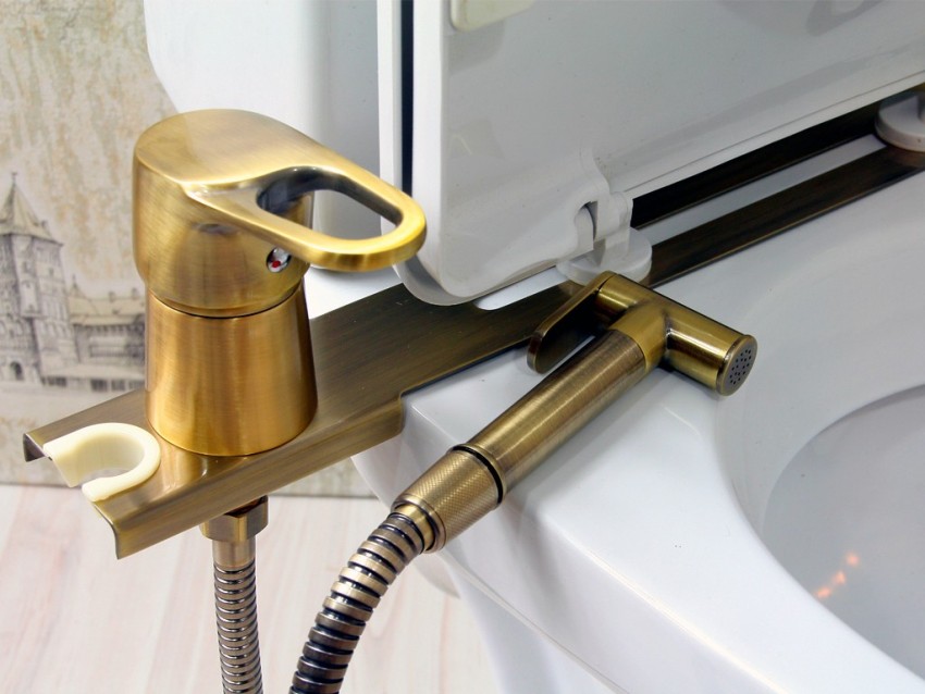 Anda juga boleh membeli lampiran tandas tandas, yang terdapat dalam bentuk muncung semburan dan pancuran mini. Pakej ini merangkumi selang, pengadun, panel logam, kepala pancuran atau muncung penarik. Pancuran diaktifkan dengan menghidupkan pengadun dan memindahkannya ke kedudukan yang sesuai. Muncung didorong oleh tekanan. Mereka mula-mula memanjang dan kemudian air dibekalkan melalui muncung. Setelah menutup paip, muncung tersembunyi di tempatnya.