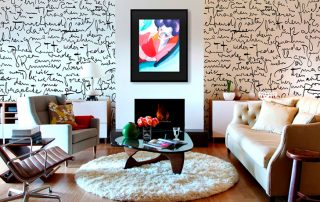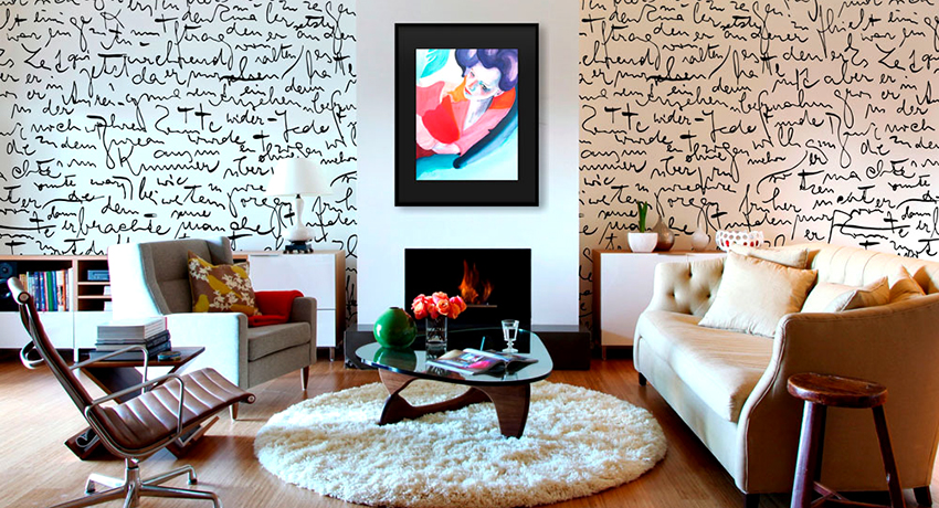 Kertas dinding dengan prasasti: gaya yang sepadan. Komposisi gabungan. Pilihan kertas dinding hitam dan putih. Petikan di kawasan pedalaman. Prasasti yang bercahaya. Hiasan dinding DIY.