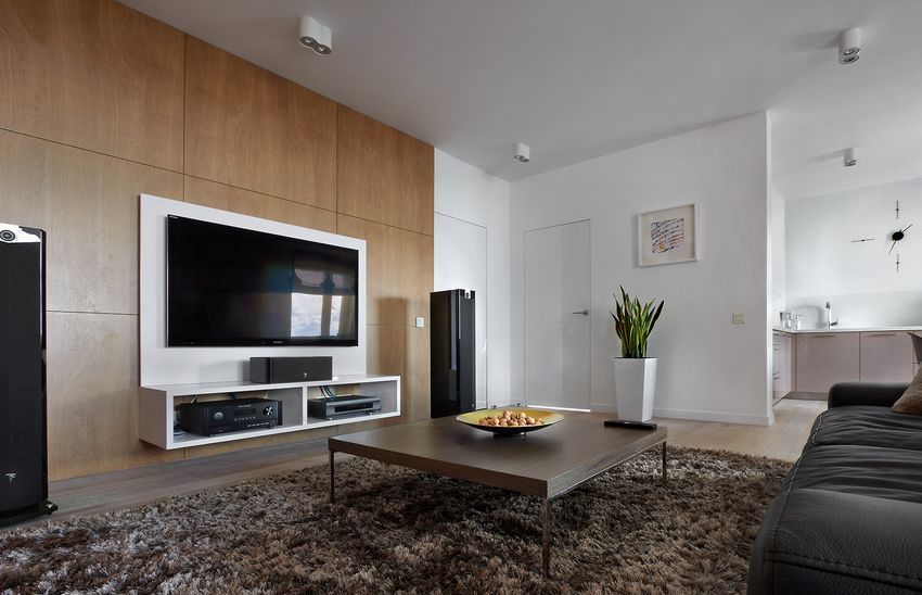 Panel dinding diperbuat daripada Papan cip di ruang tamu