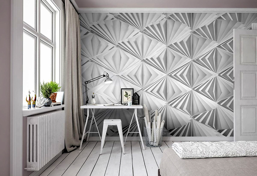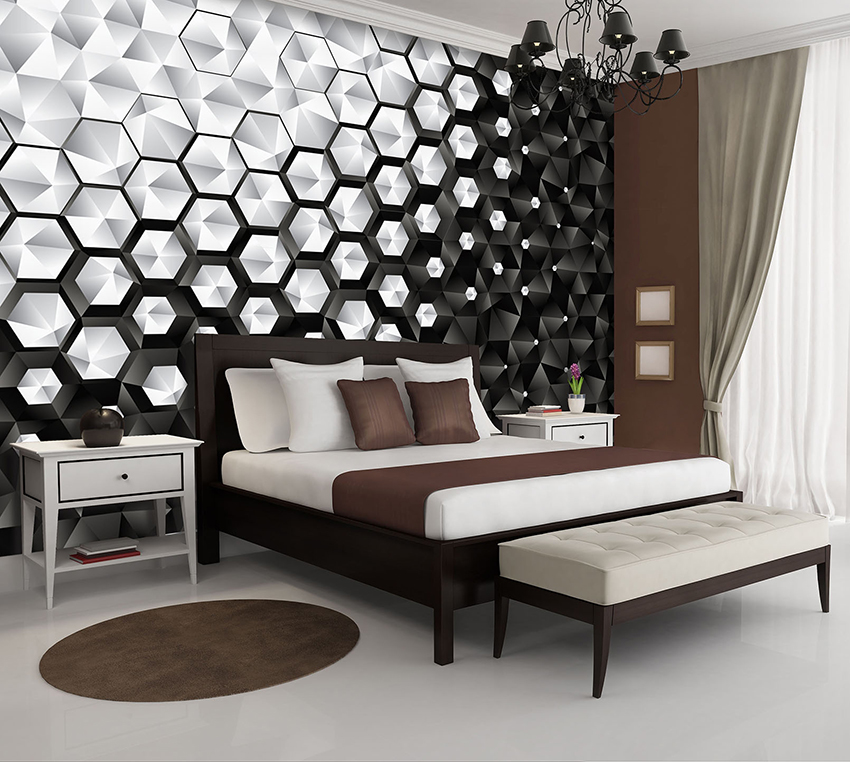 Untuk mencipta kesan dinding cembung, cekung atau tidak seragam dengan lekukan yang tidak biasa, anda boleh menggunakan kertas dinding foto 3D di bilik tidur. Kesan sedemikian akan sangat relevan di bilik remaja. Di dalam bilik orang dewasa, mural dengan lukisan atau relief dengan plot antik sering digunakan di dinding. Dalam kes ini, penting untuk menyesuaikan keseluruhan gaya bilik dengan gambar yang dipilih.