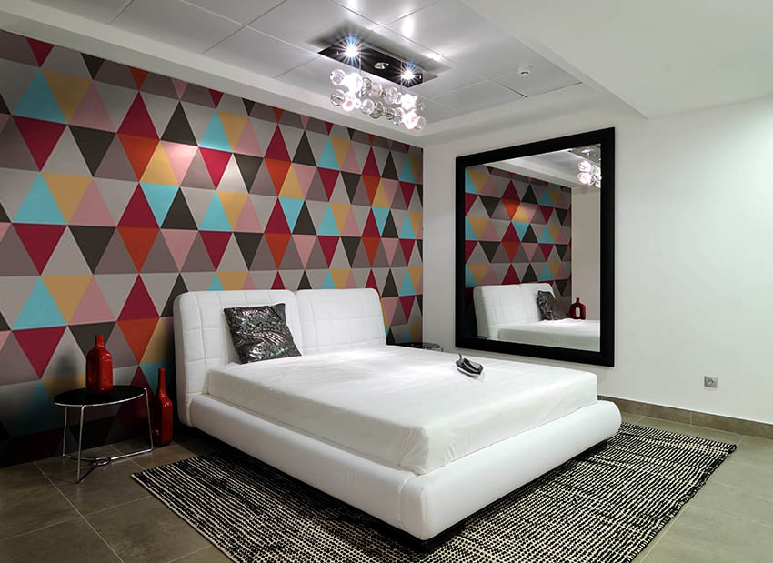 Peraturan utama yang disarankan untuk dipatuhi ketika membuat reka bentuk bilik tidur yang unik adalah memilih corak pada wallpaper foto agar sesuai dengan warna kertas dinding utama dan menekankan gaya bilik tidur. Barulah dapat mewujudkan imej yang harmoni.