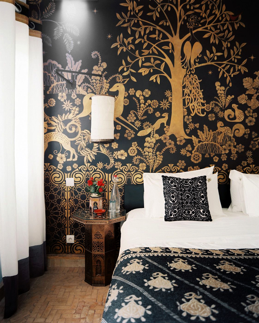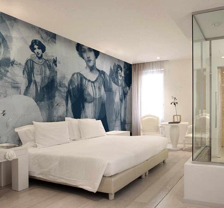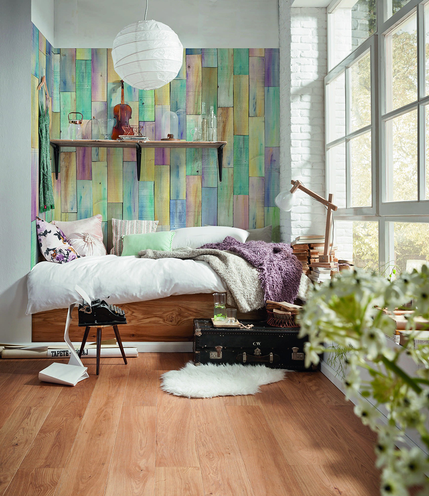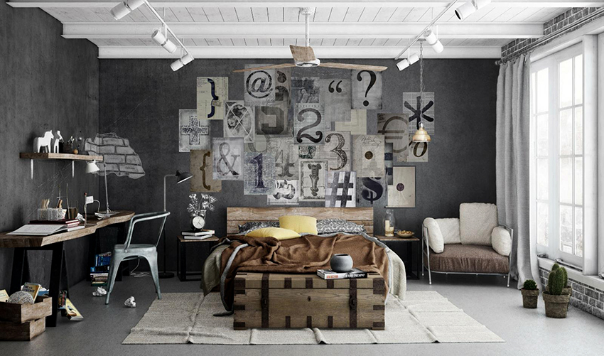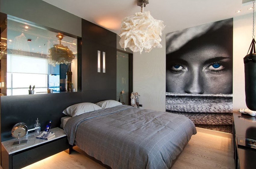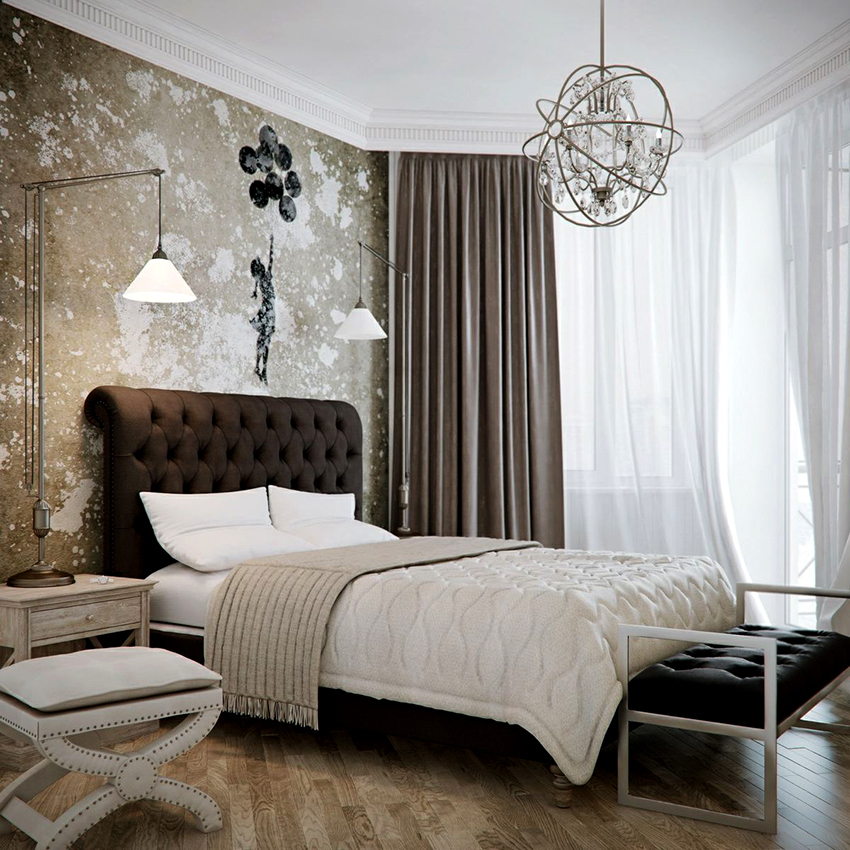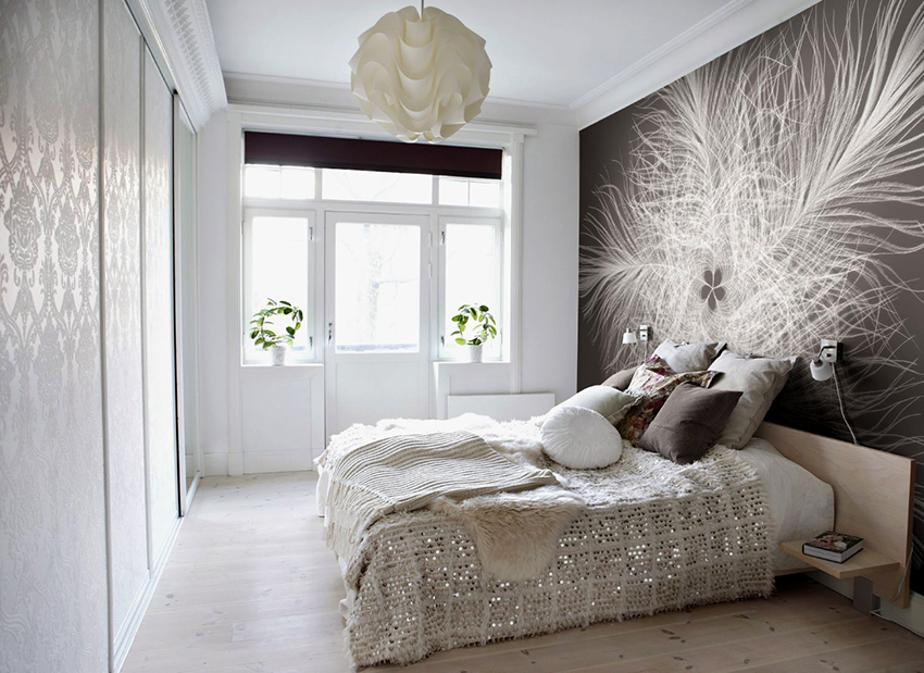 Pilihan popular lain untuk kertas dinding gambar untuk bilik tidur: foto dalaman yang menarik