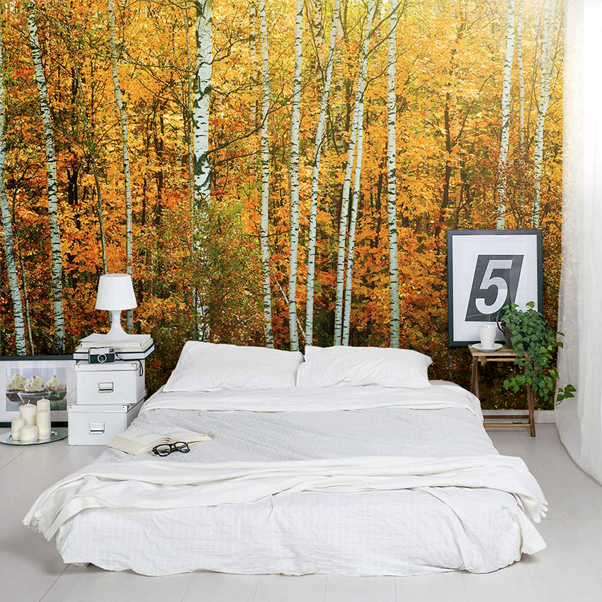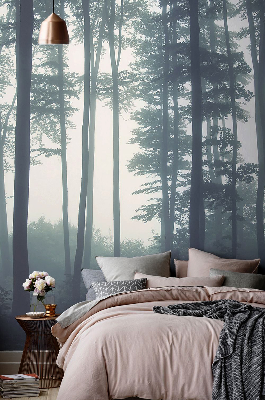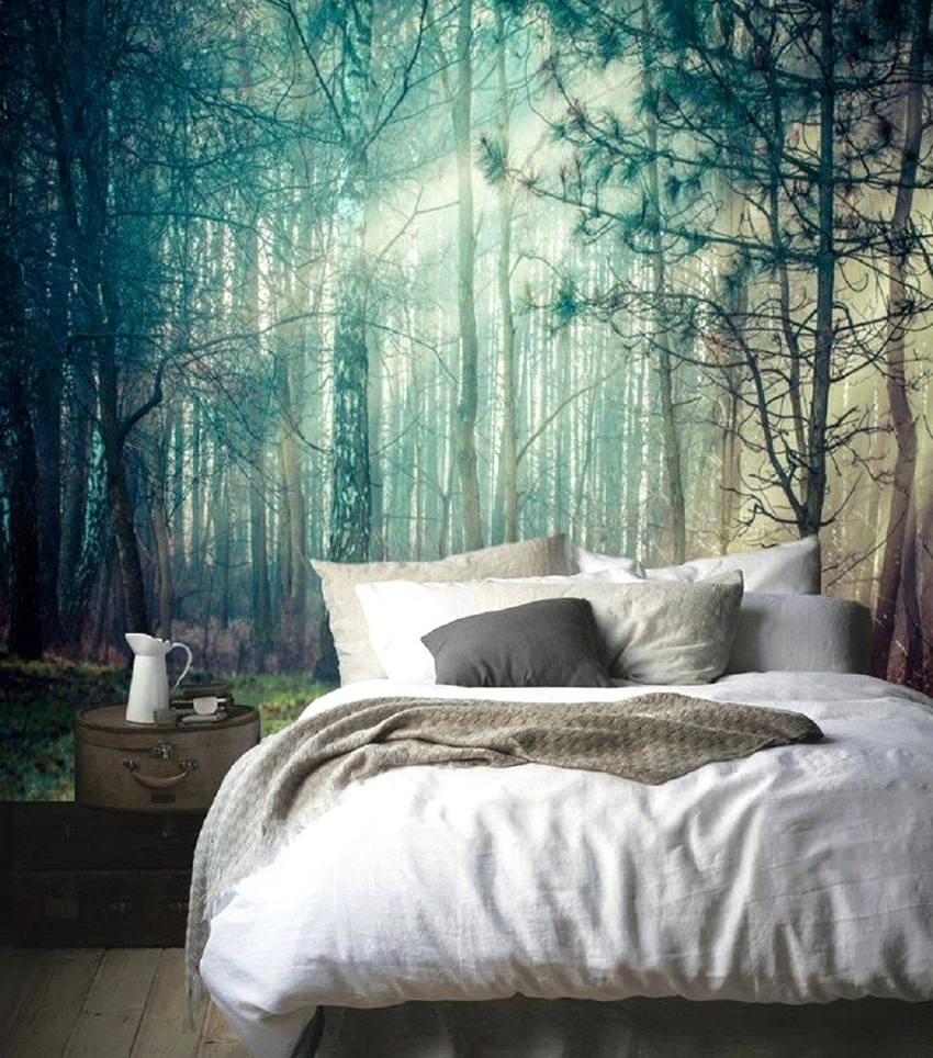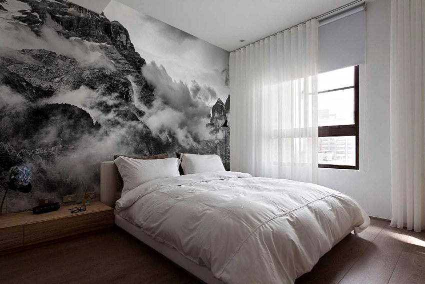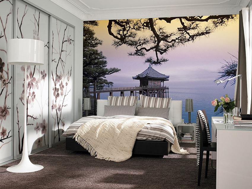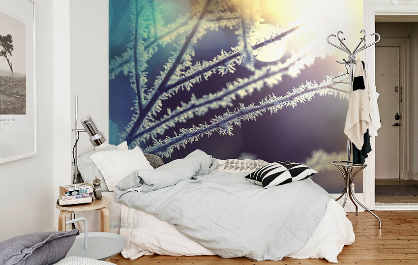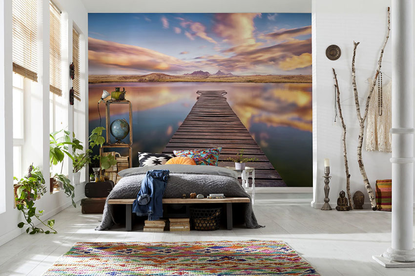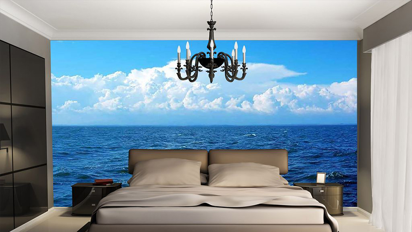 Kertas dinding foto di bilik tidur: pilihan produk bergantung pada kaedah pencetakan dan pemilihan format