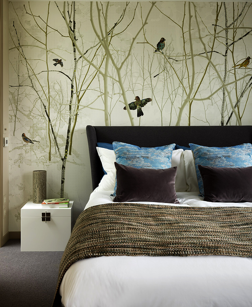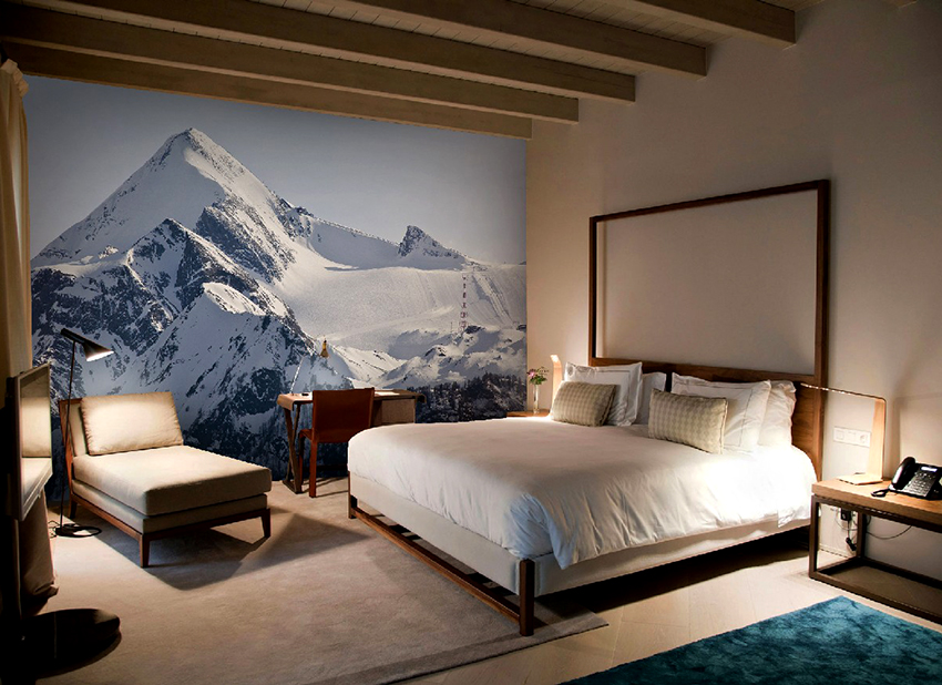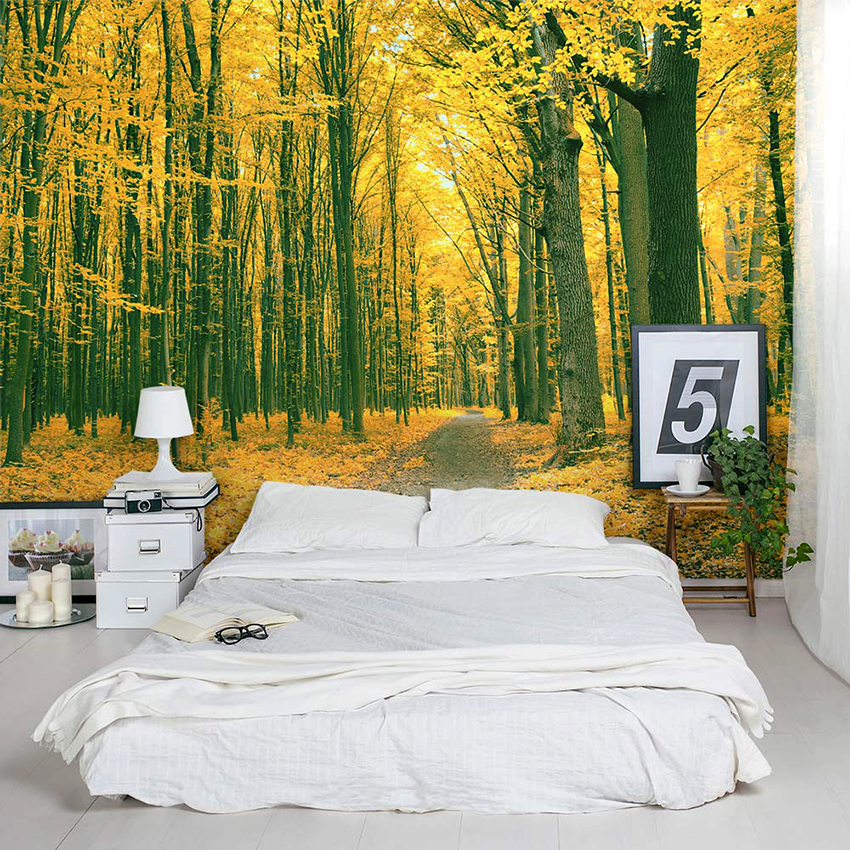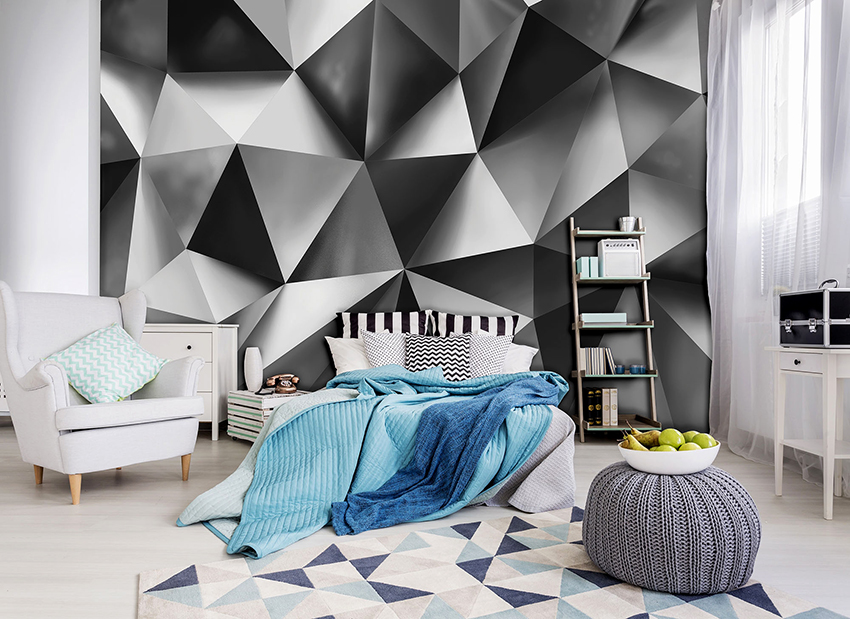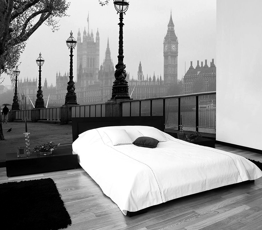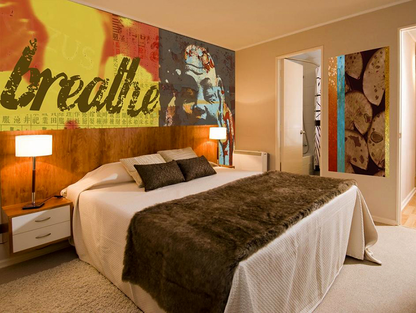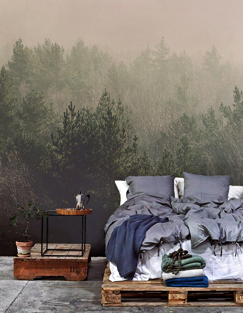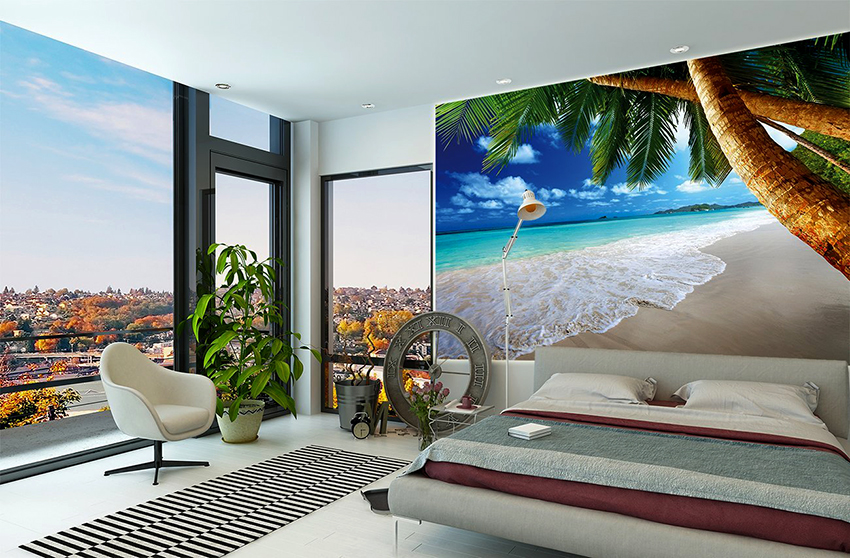 Kertas dinding foto di bilik tidur: pilihan produk bergantung pada kaedah pencetakan dan pemilihan format