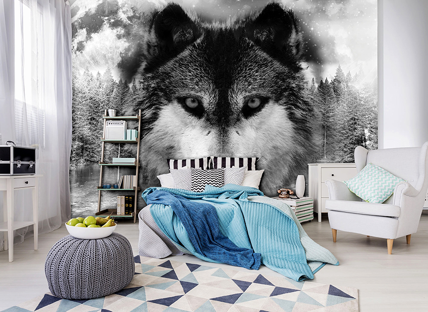 Pencinta haiwan lebih suka menghiasi dinding dengan gambar hidupan liar yang anggun. Sebilangan orang menampal dinding aksen dengan kertas dinding gambar yang menggambarkan haiwan di mana seseorang dilahirkan (menurut kalendar Cina), terutama jika tingkah laku dan perwatakannya serupa dengan yang ada pada seseorang. Gambar besar haiwan seperti itu kelihatan sangat realistik: