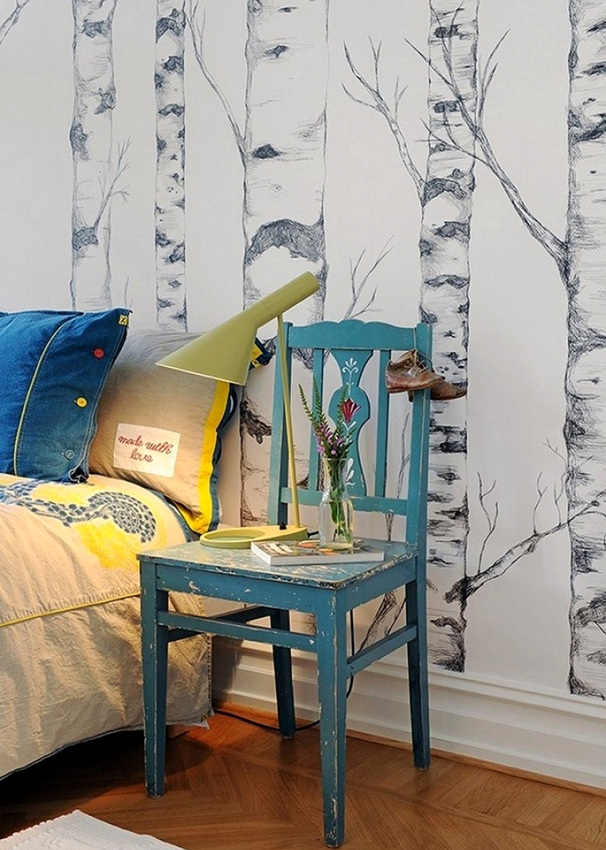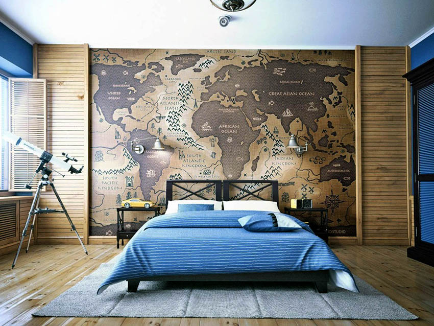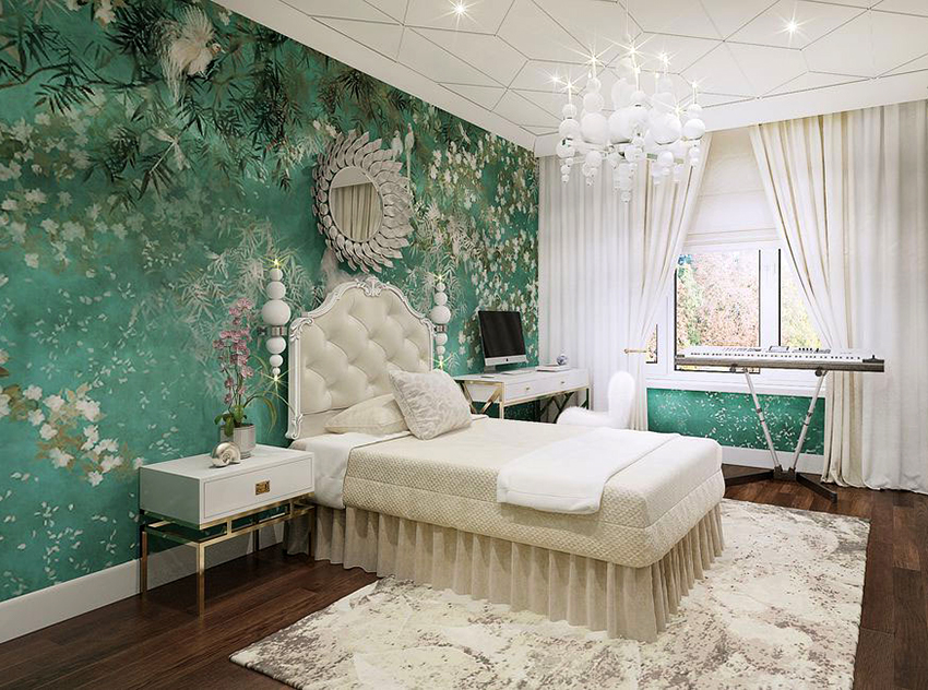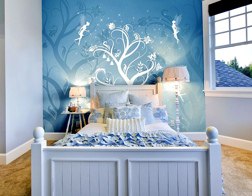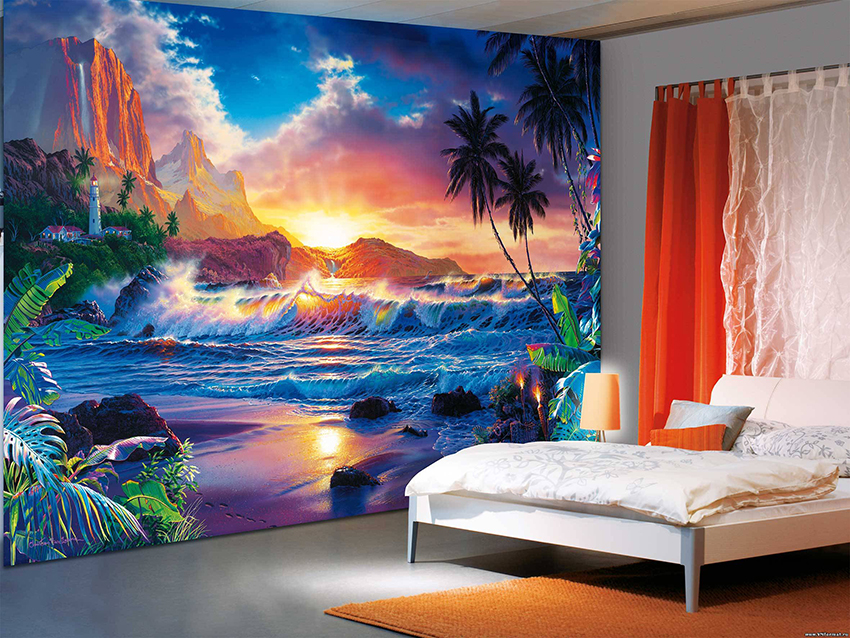 Bahagian dalamannya hanya akan menjadi individu dan unik, jika anda tidak takut untuk memindahkan idea fantasi ke dinding. Dengan bantuan kertas dinding, tanpa meninggalkan bilik tidur, anda dapat mengunjungi negara yang jauh, menjadi pelawat ke pantai laut dan penakluk puncak gunung, dan juga selalu menikmati berbunga tumbuhan yang indah.