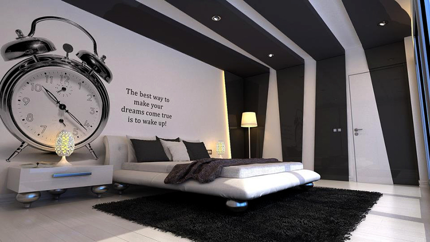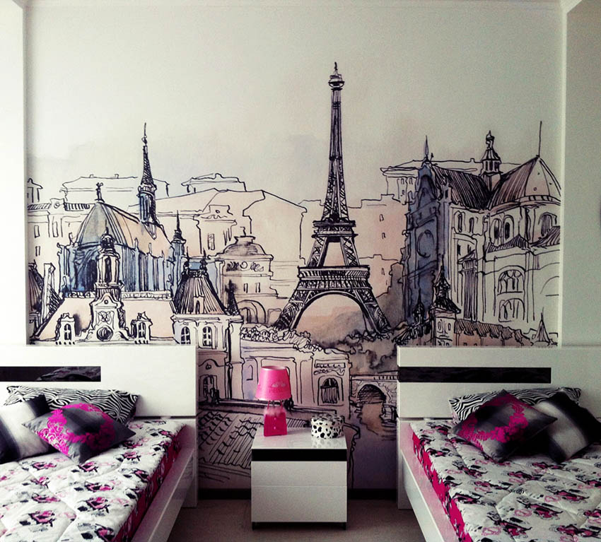 Reka bentuk bilik tidur harus memberi kesan yang santai kepada seseorang. Di ruangan inilah seharusnya ada kesempatan untuk bersantai dan bersantai dengan tenang untuk hari baru. Ramai orang ingin menyampaikan mood mereka dan menunjukkan imaginasi kreatif ketika menghias bilik tidur. Mural dinding di bilik tidur dianggap sebagai salah satu teknik berkesan yang menghasilkan reka bentuk yang unik. Teknologi moden memberikan kanvas seperti gambaran yang realistik sehingga ruangan itu menjadi nyata di depan mata kita.