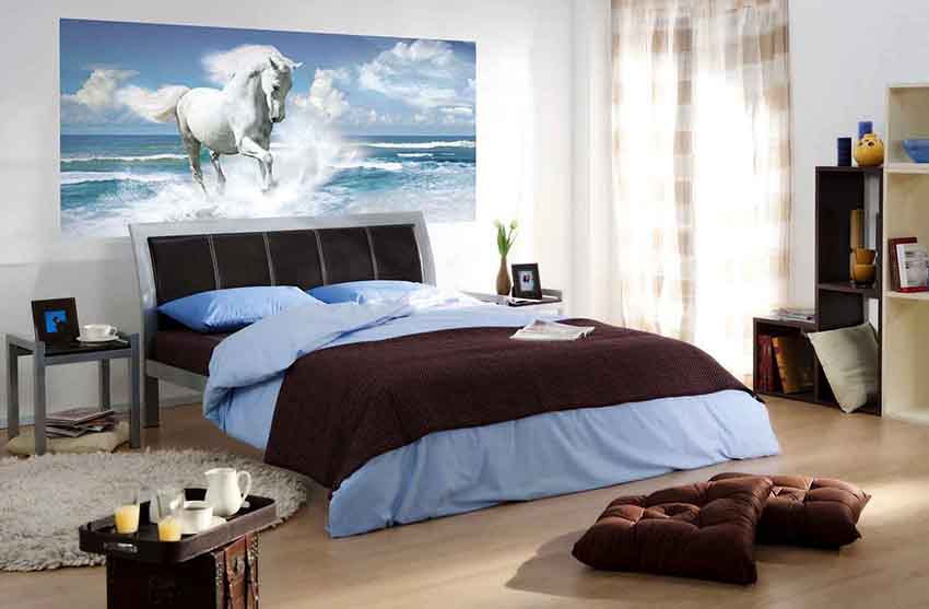 - Bilik tidur dengan kertas dinding foto kelihatan cantik.Sekiranya anda memilih kanvas yang betul dan melekatkannya dengan kualiti yang tinggi, dinding akan tetap menarik untuk jangka masa yang panjang.