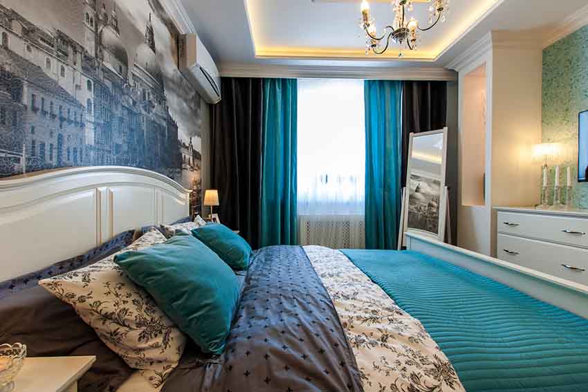 Cara menggabungkan dan memilih warna bergantung pada ciri-ciri bilik tidur