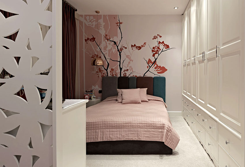 Ukuran wallpaper foto juga penting dan harus dipilih mengikut dimensi bilik tidur dan jumlah item yang dipasang: