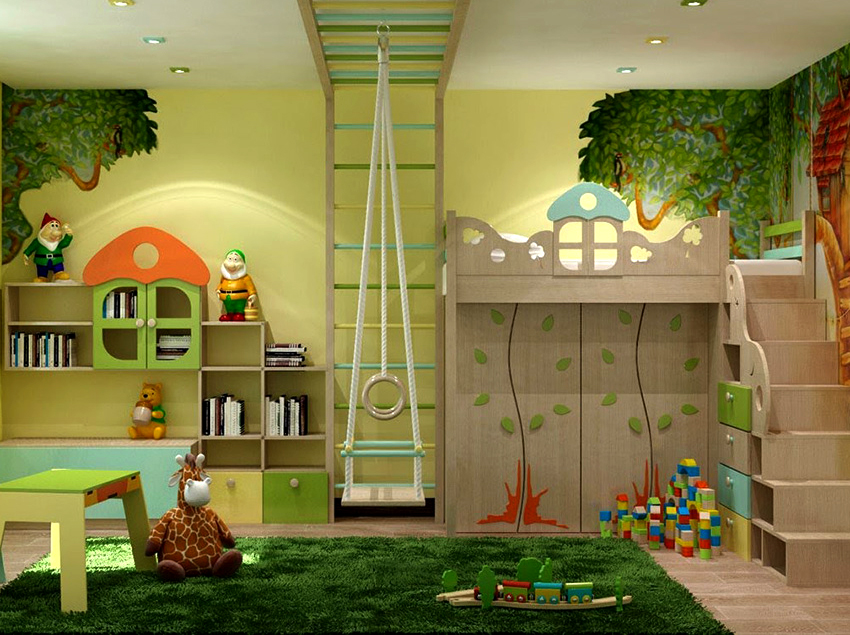 - Di kawasan permainan. Di sini sesuai untuk memilih kanvas yang tenang dan beraneka ragam yang sesuai dengan suasana kawasan hiburan.