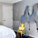 - Negara. Di sini, mural dinding dengan kuda, taman, pemandangan gunung atau desa lebih biasa di dinding.
