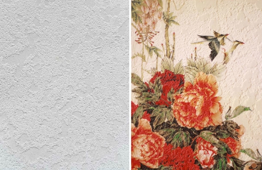 Berkat adanya asas pelekat diri untuk lukisan dinding, kemungkinan penggunaannya meningkat dengan ketara. Semua tempat yang kompleks dan juga siling menjadi mungkin untuk dihiasi dengan lukisan dinding. Tetapi penting untuk memahami bahawa kerana asas yang tipis, semua ketidaksempurnaan lega akan kelihatan.