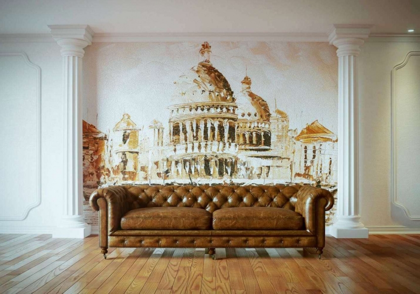 - mural digital adalah sejenis gambar yang selesai sepenuhnya yang hanya perlu anda letakkan di dinding yang dipilih. Sangat mudah bahawa pilihan ini tidak memerlukan meratakan permukaan, dan lukisan dinding boleh dipasang ke dinding melengkung mana pun.