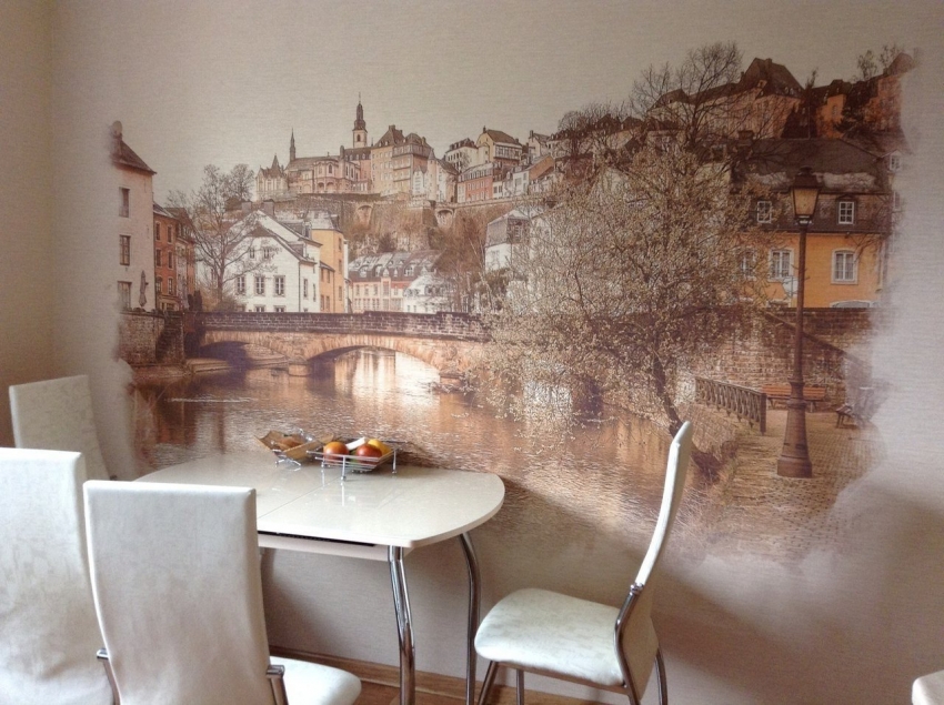 Sekiranya anda ingin memesan lukisan dinding dengan yang asli, tidak seperti yang lain, anda boleh menggunakan foto anda sendiri dari perjalanan anda. Untuk melakukan ini, perlu memerintahkan visualisasi komputer terlebih dahulu, dan kemudian, setelah mendapat persetujuan, pakar akan mula membuat lukisan dinding.
