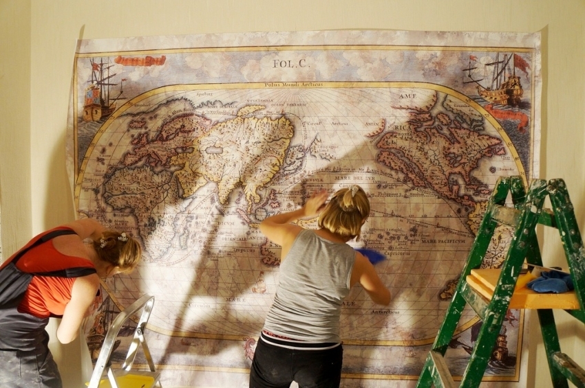 Cara melekatkan mural di dinding: asas pelekat diri untuk gambar