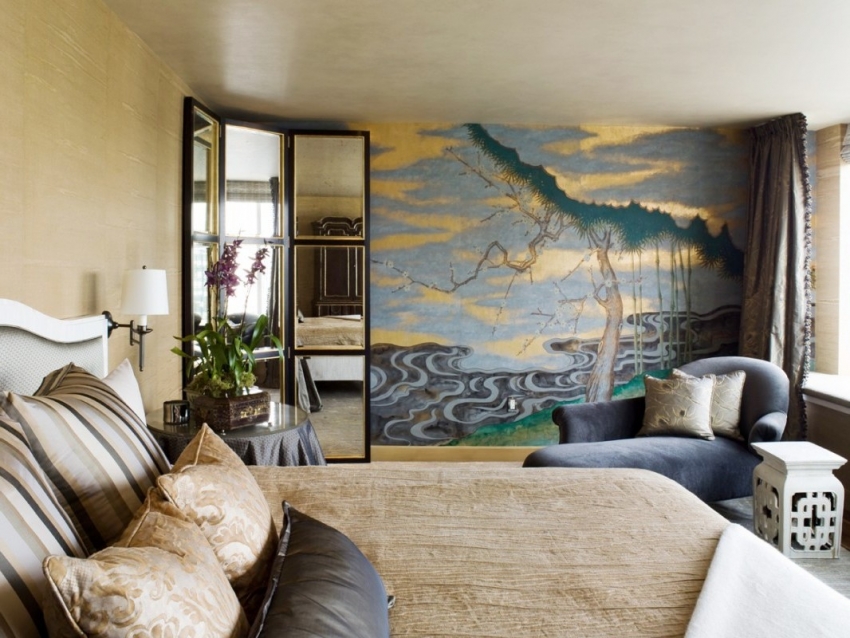 Penggunaan lukisan dinding di pangkalan bukan tenunan membolehkan anda menonjolkan kawasan tertentu di dalam bilik