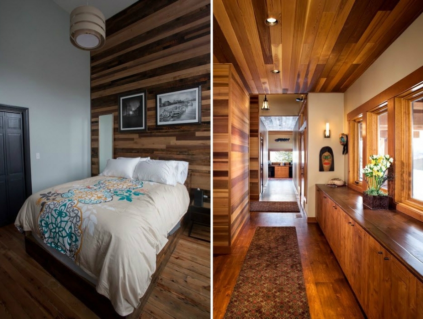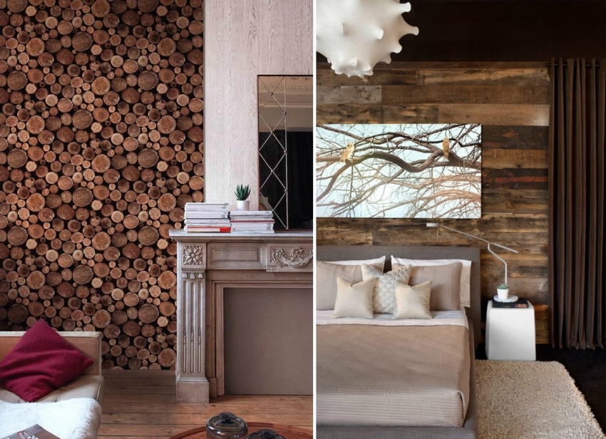 Kayu adalah bahan yang luar biasa dengan kemampuan untuk tetap hangat dan mewujudkan persekitaran yang selesa. Bahagian dalaman yang selesa dapat diperoleh walaupun menggunakan kertas dinding dengan corak butiran kayu. Tidak kira jenis kayu, cara pengolahannya dan arah menggergaji, bahan ini sesuai dengan ruang bilik dengan optimum dan digabungkan dengan gaya yang berbeza.