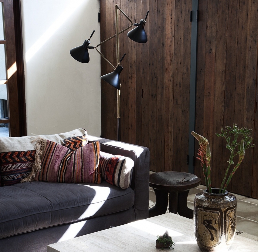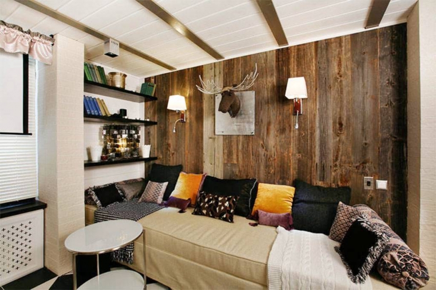 Nasihat berguna! Sekiranya seharusnya menggabungkan bahan-bahan yang berbeza di pedalaman, maka penekanan di tempat pertama tidak harus dibuat pada pemilihan warna dan tekstur, tetapi untuk menjaga kesatuan dalam reka bentuk dan gaya.