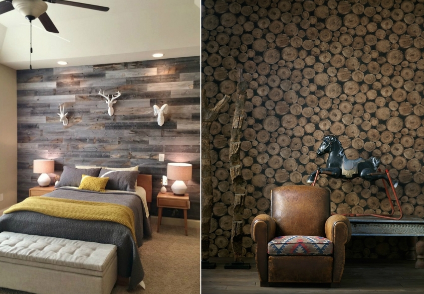 Pemindahan tekstur dan keunikan corak kayu yang paling tepat disampaikan oleh kertas dinding, terutama yang menghasilkan kesan 3D tiga dimensi.
